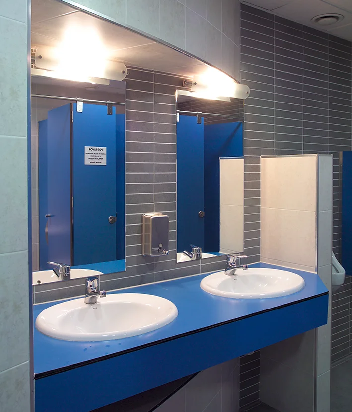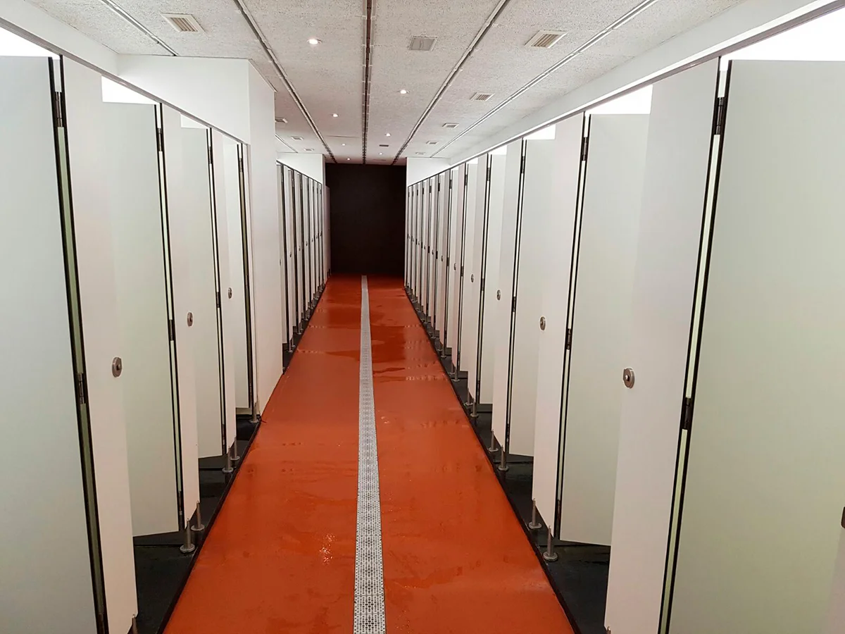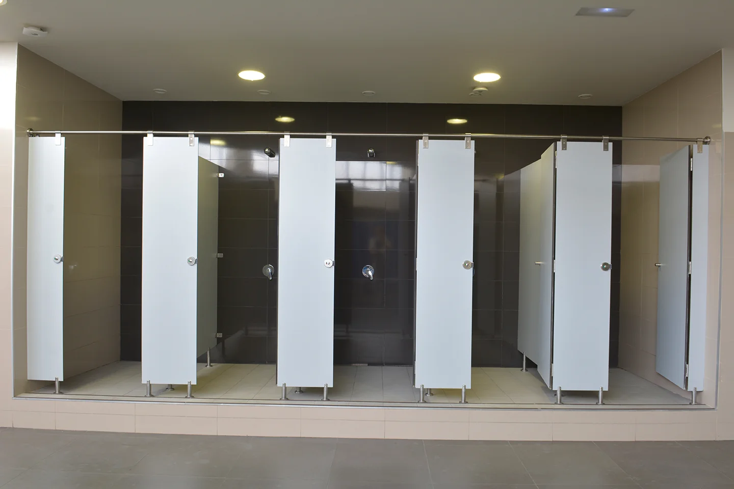 Existen dos sistemas diferenciados por su estética y precio, las cabinas con tubo superior en acero, o bien con perfil “U” de aluminio. También tenemos la opción de dos tipos de tablero hidrófugo, tablero compacto con núcleo negro de resinas fenólicas HPL y el tablero de densidad media MDF de núcleo marrón, ambos con acabados estandarizados azul, blanco y gris, permitiendo como opción un gran abanico de colores personalizados.